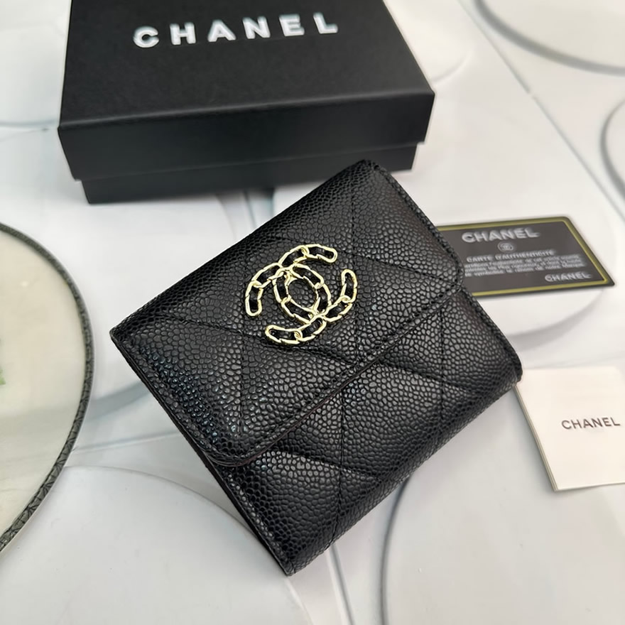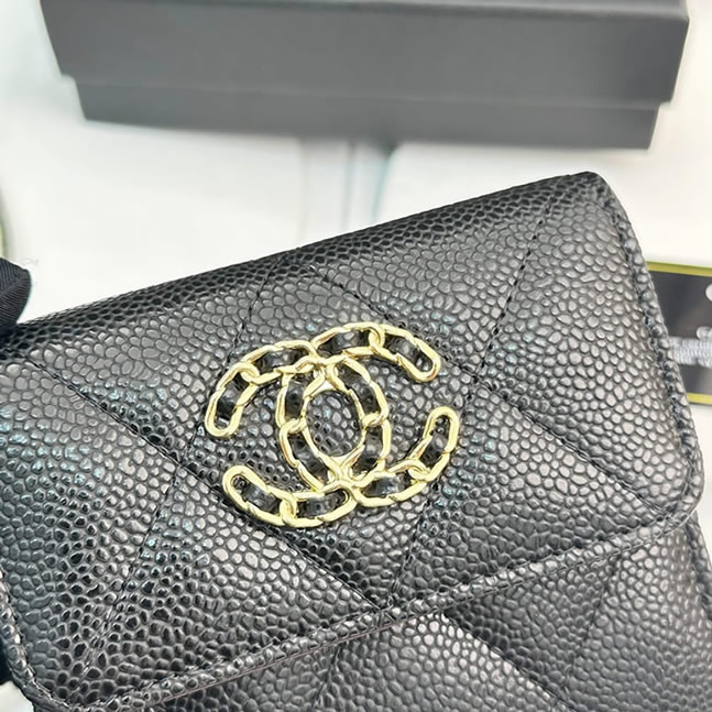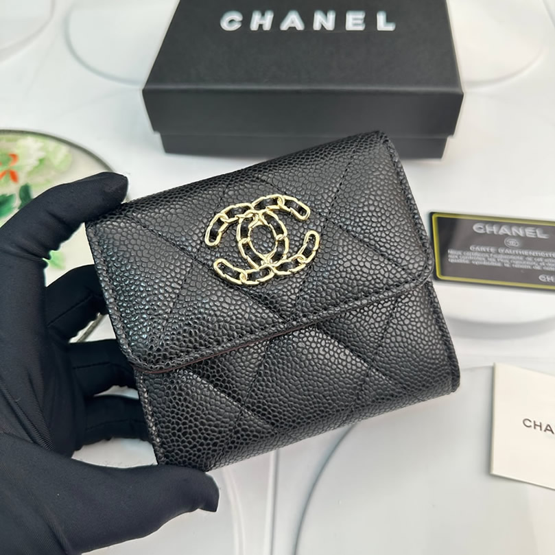 シャネル19 スモール フラップ ウォレット キャビアスキン ブラック ゴールド金具 chg003
