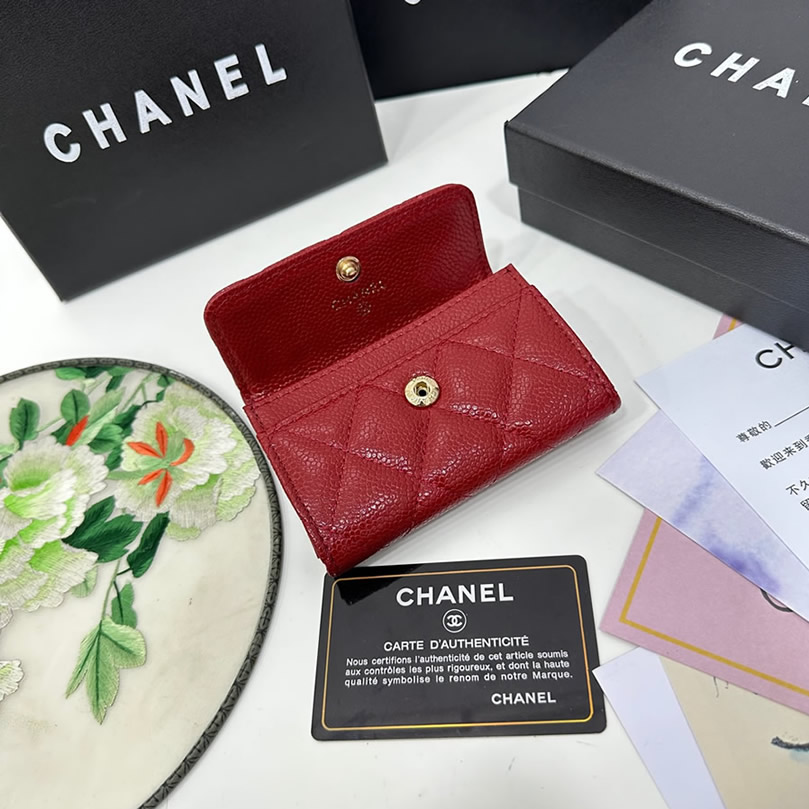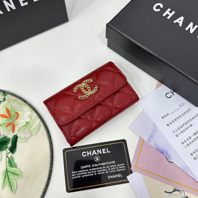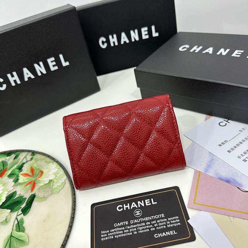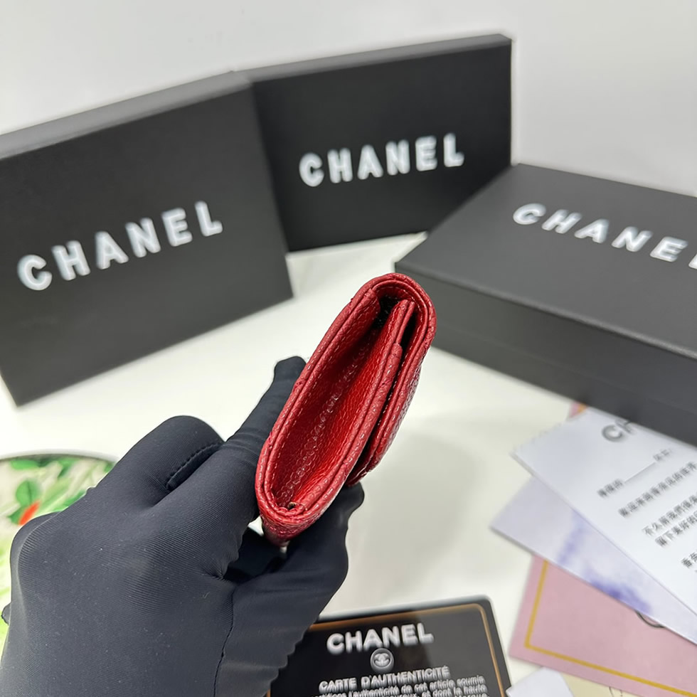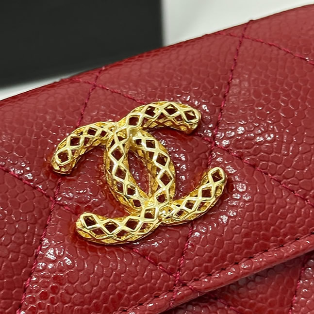 鮮やかなレッドとチェーンを模したCCロゴが映える華やかなデザイン。
