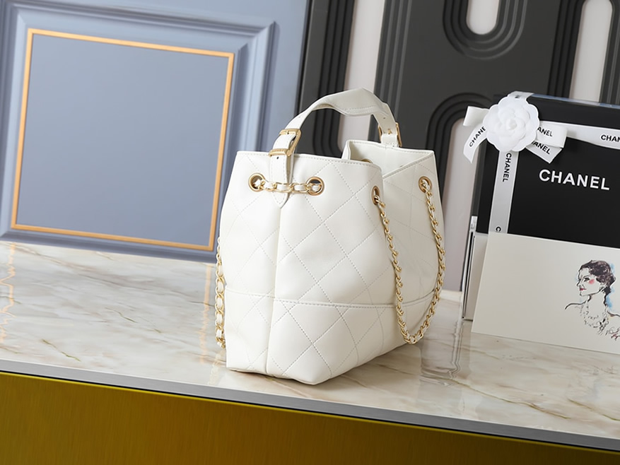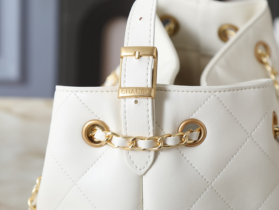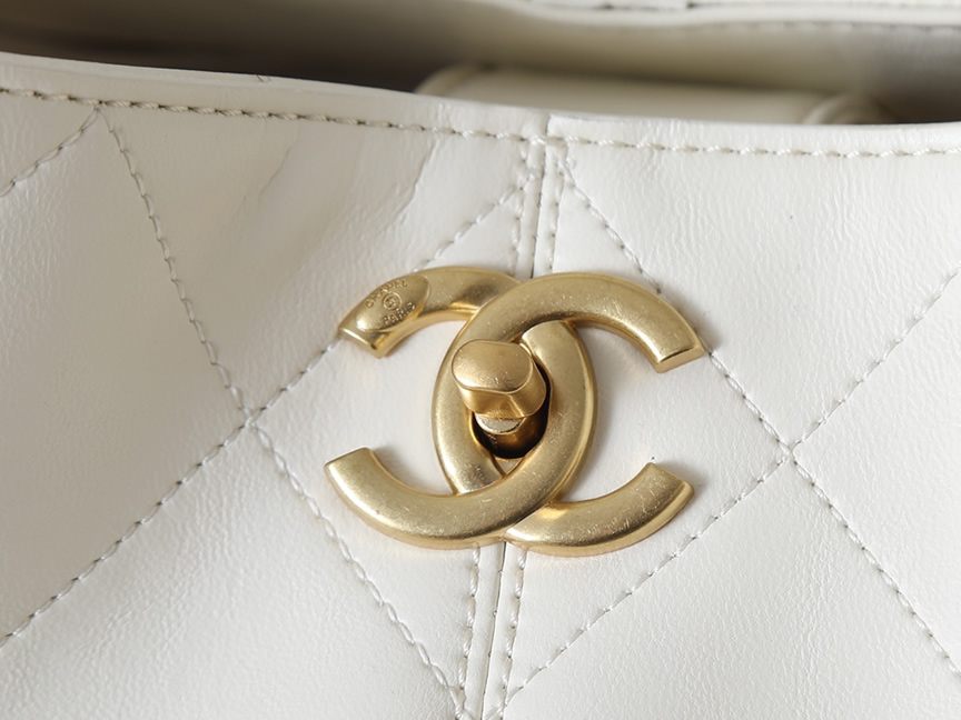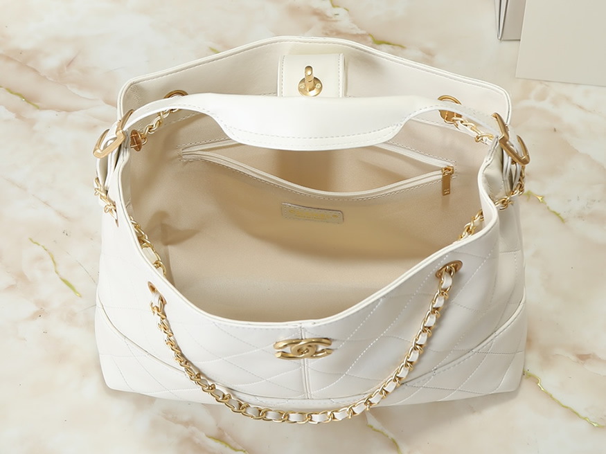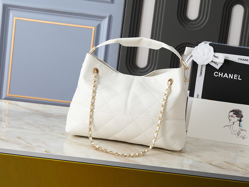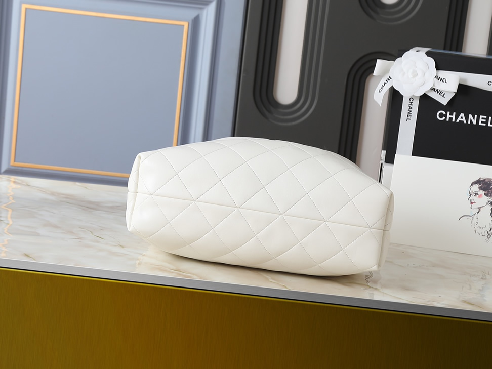 シャネル マトラッセ ラムスキン ラージ ホーボーバッグ ホワイト ゴールド金具 CHAS5634