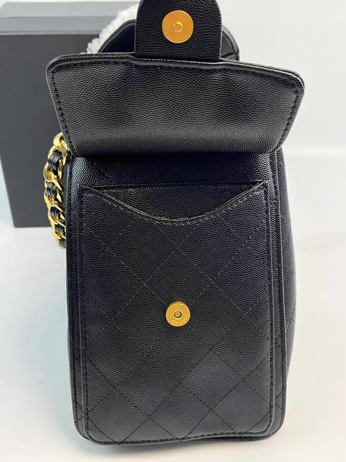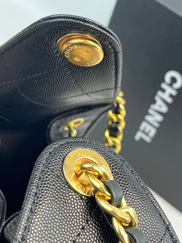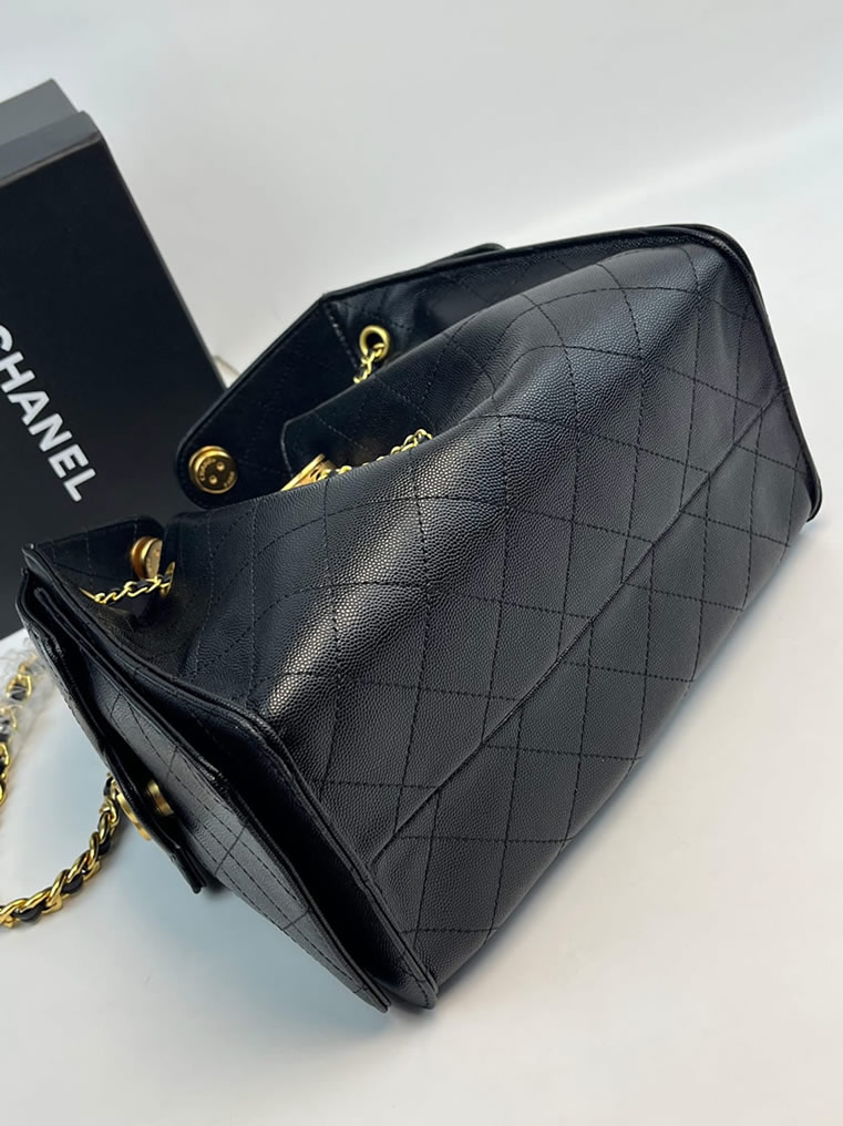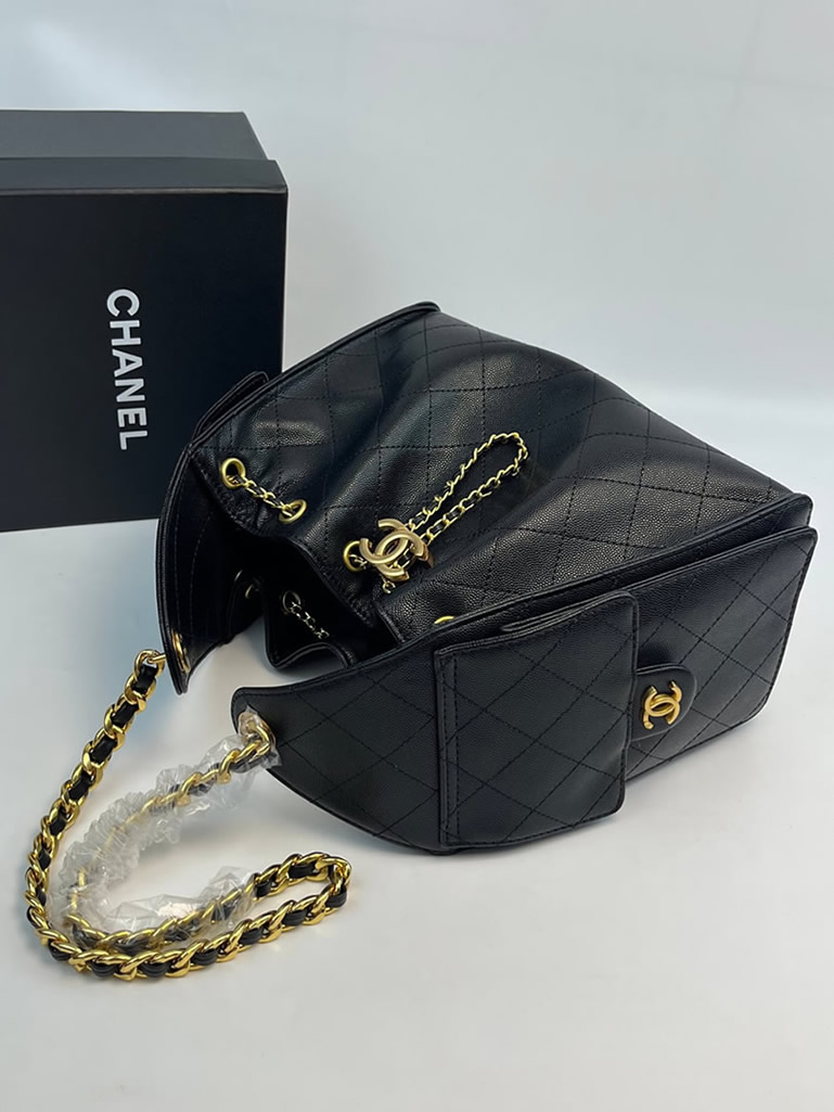 タイムレスなブラックにゴールドのCCロゴとチェーンストラップが輝き、