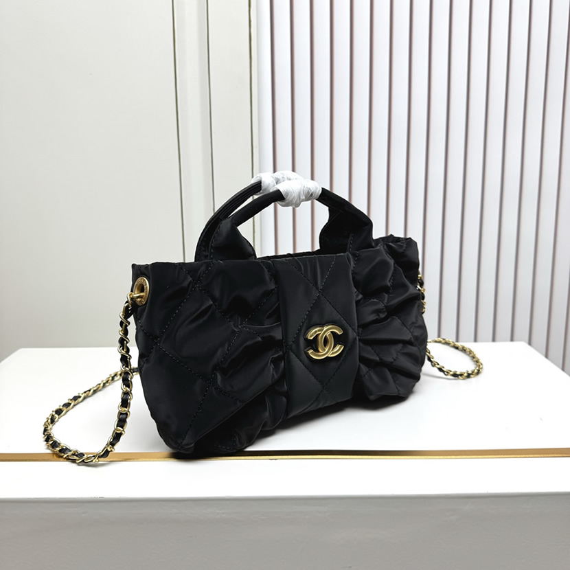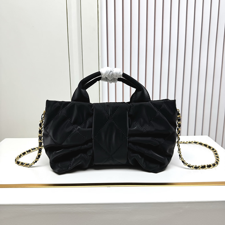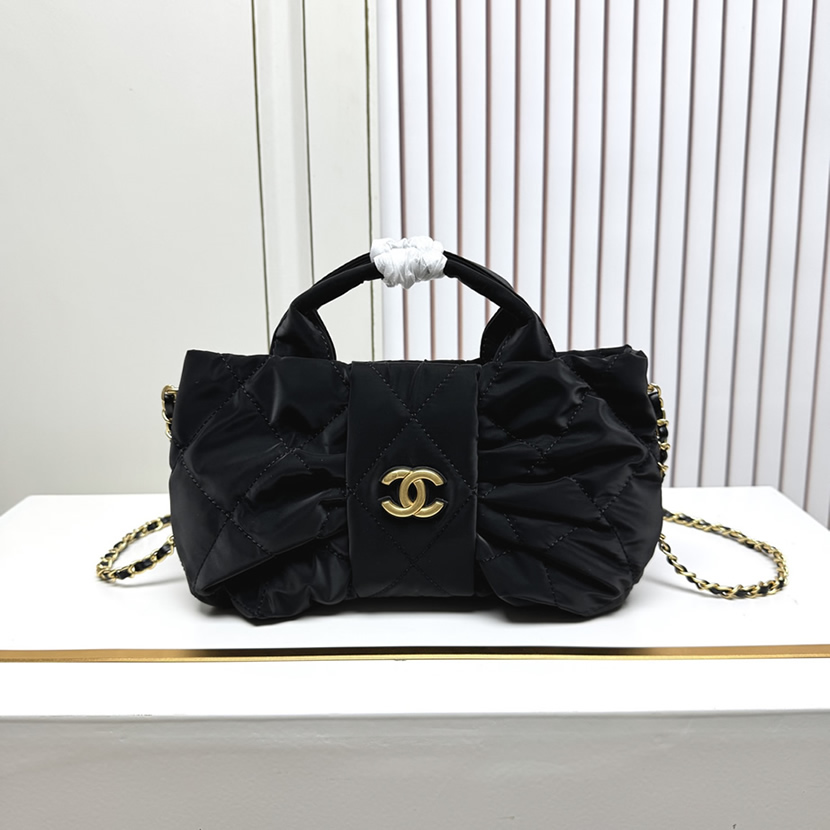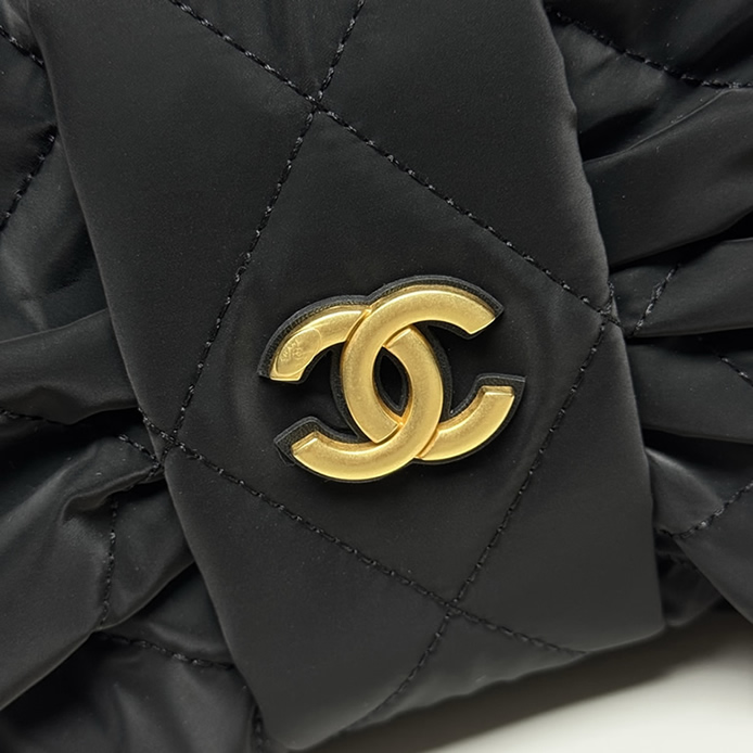 シャネル マトラッセ リボン モチーフ 2WAY ハンドバッグ ナイロン ブラック ゴールド金具 CH5859