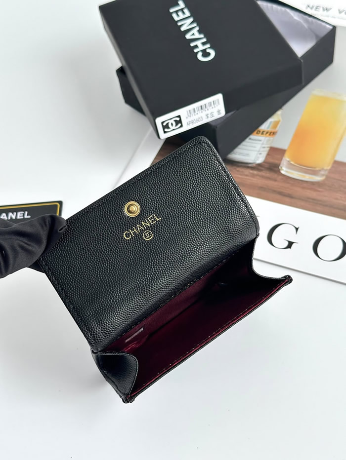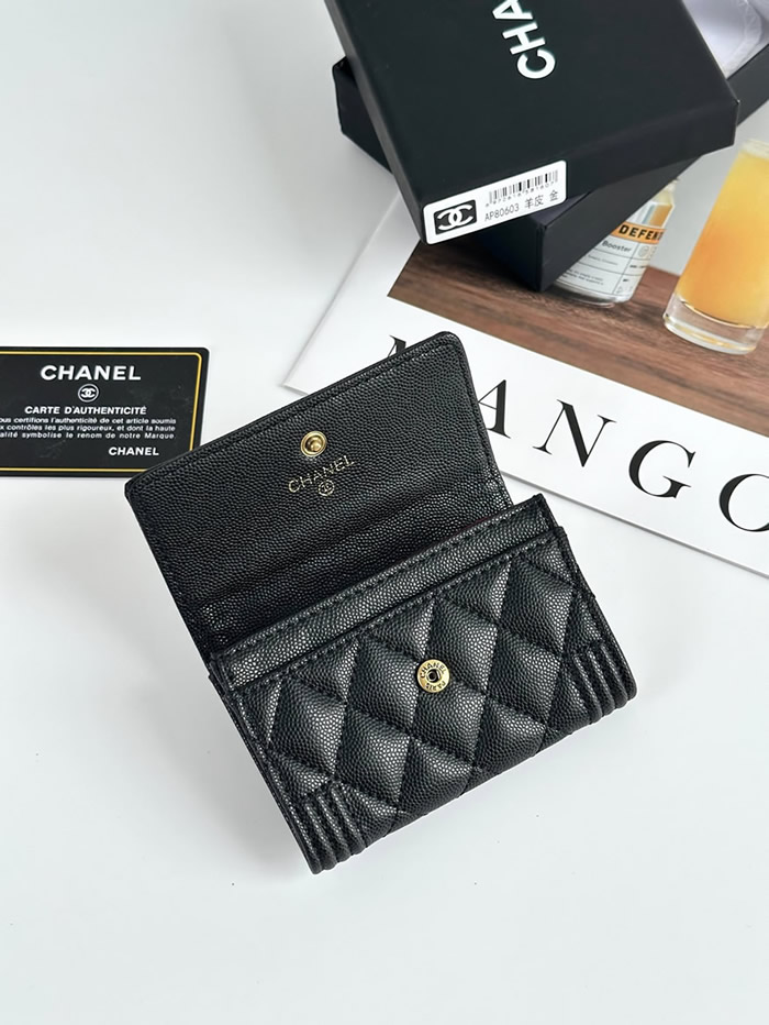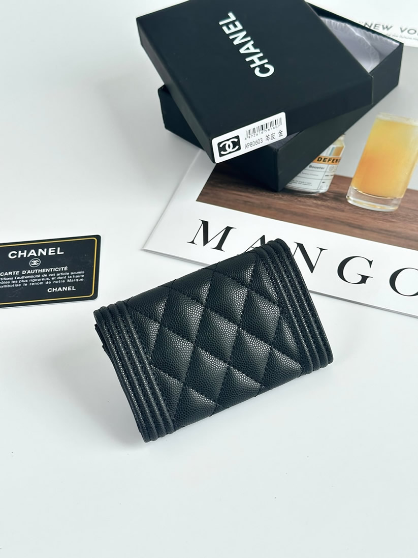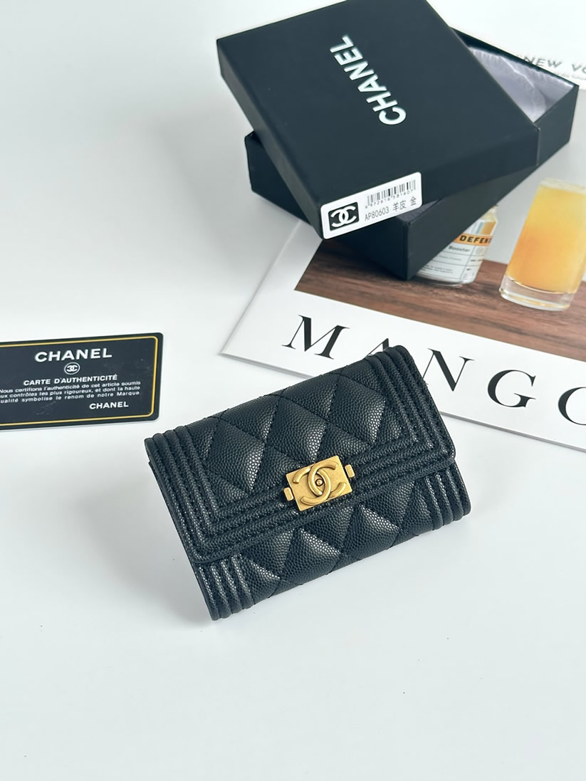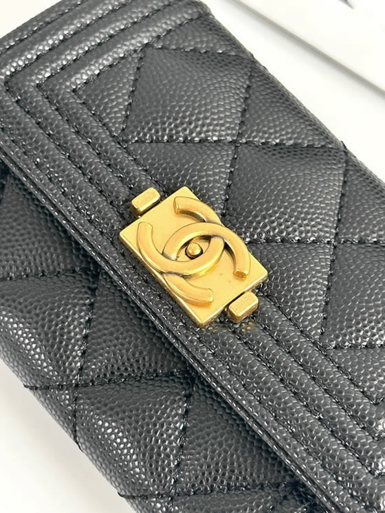 エッジィな魅力を放つ「ボーイシャネル」ラインのフラップ ウォレットです。キズがつきにくい上質なキャビアスキンに、