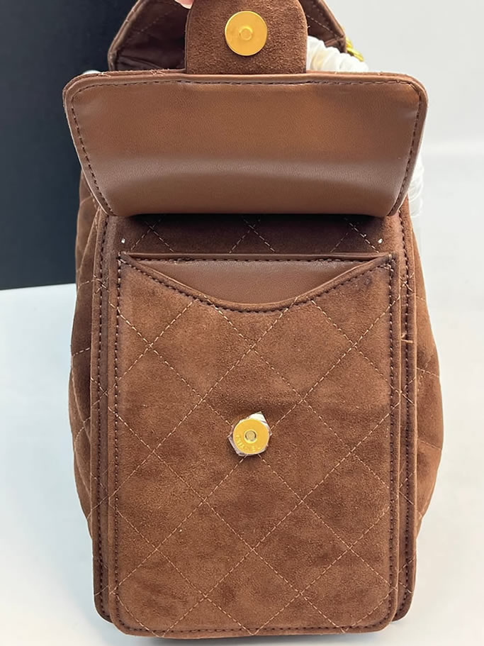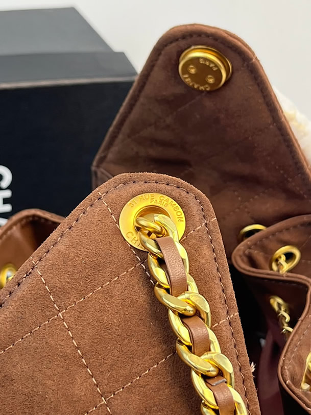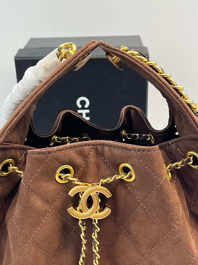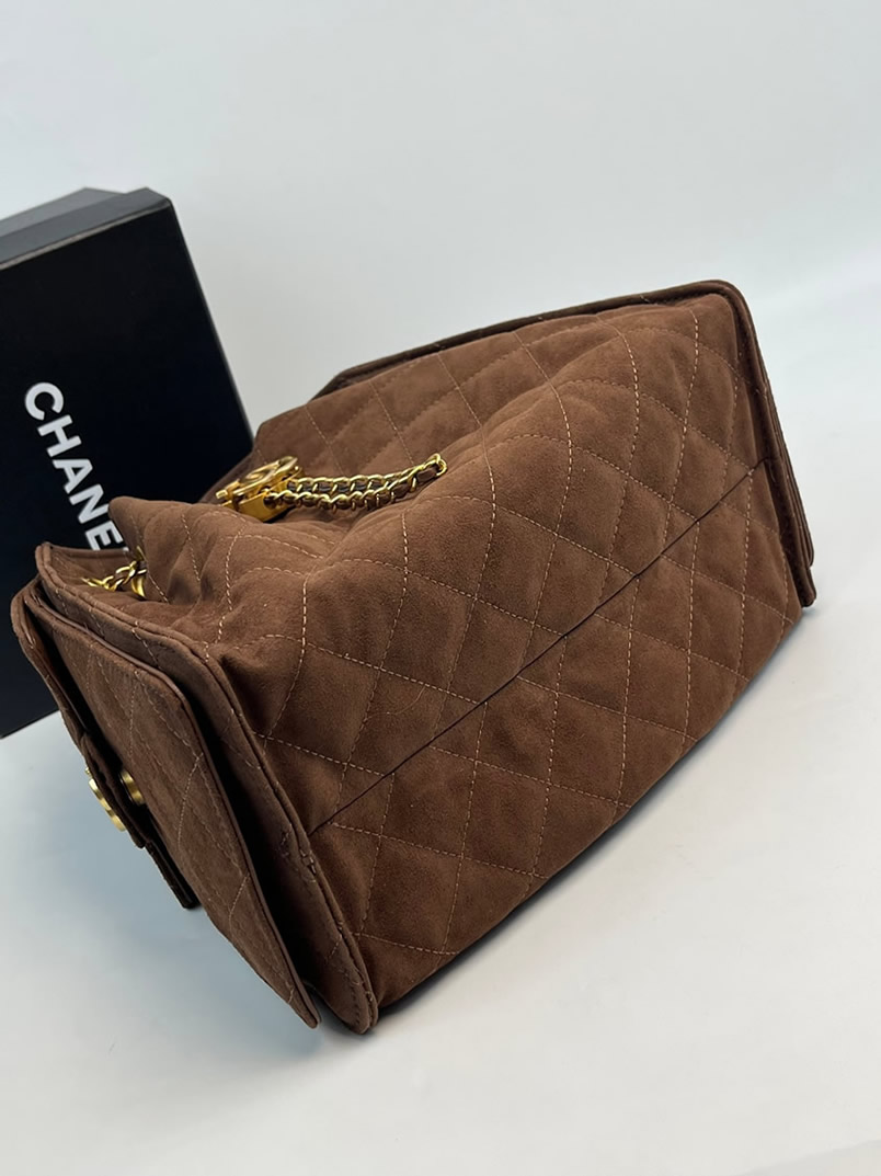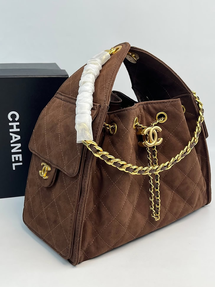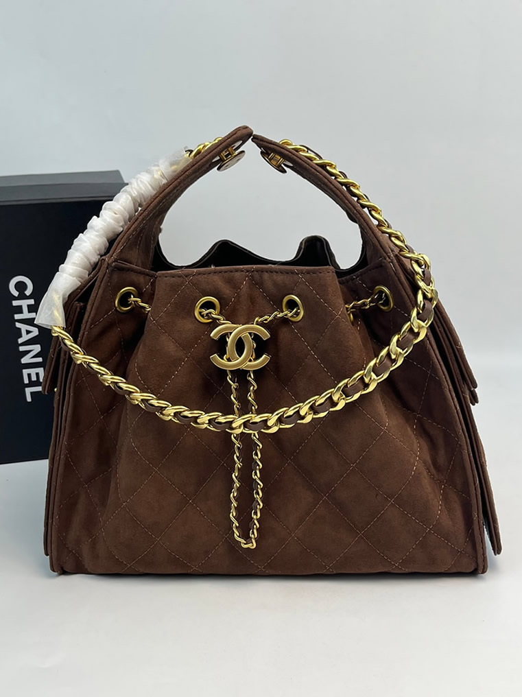シャネル マトラッセ スエード调 巾着 チェーン トートバッグ ブラウン ゴールド金具 CH7071