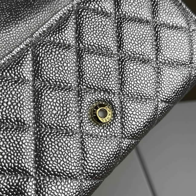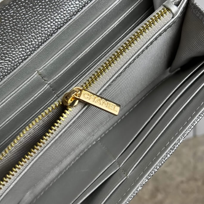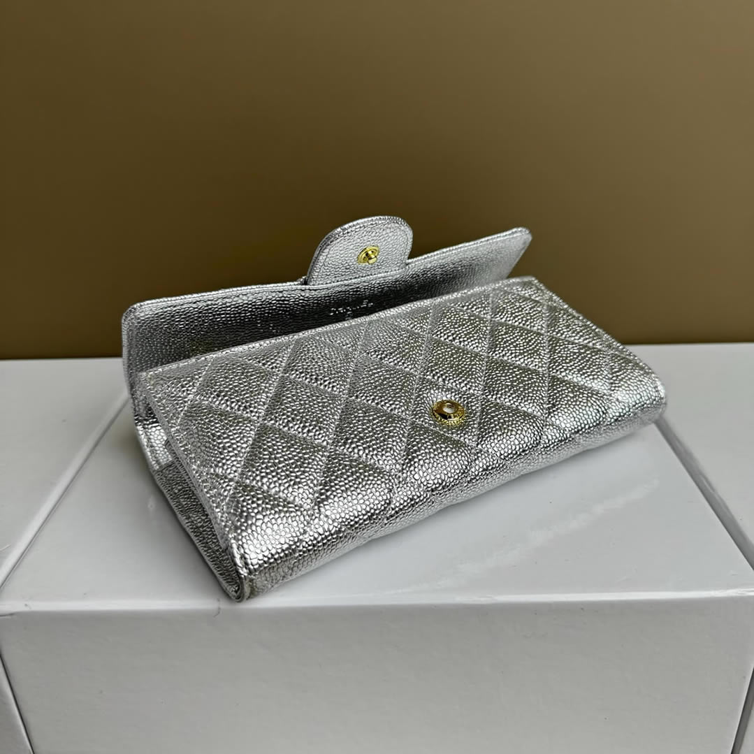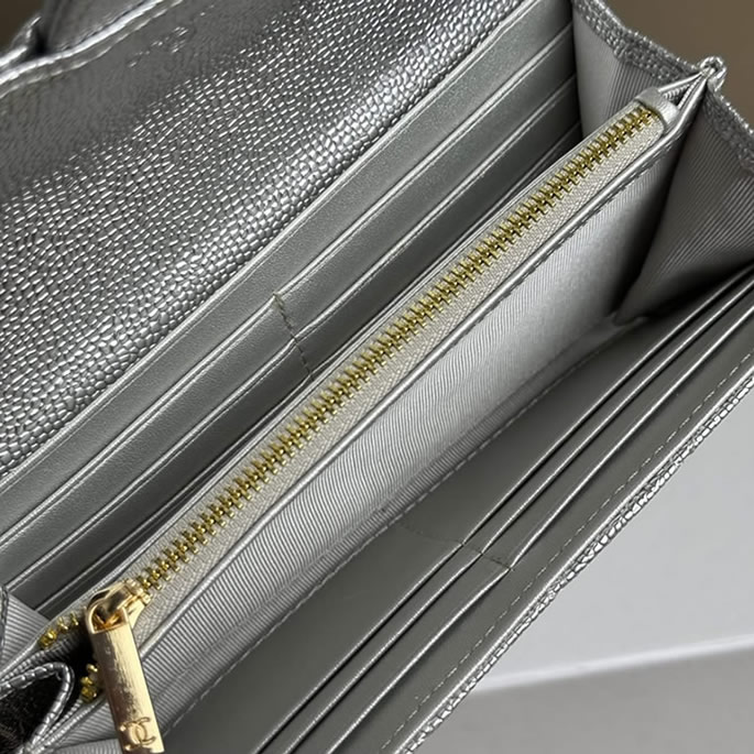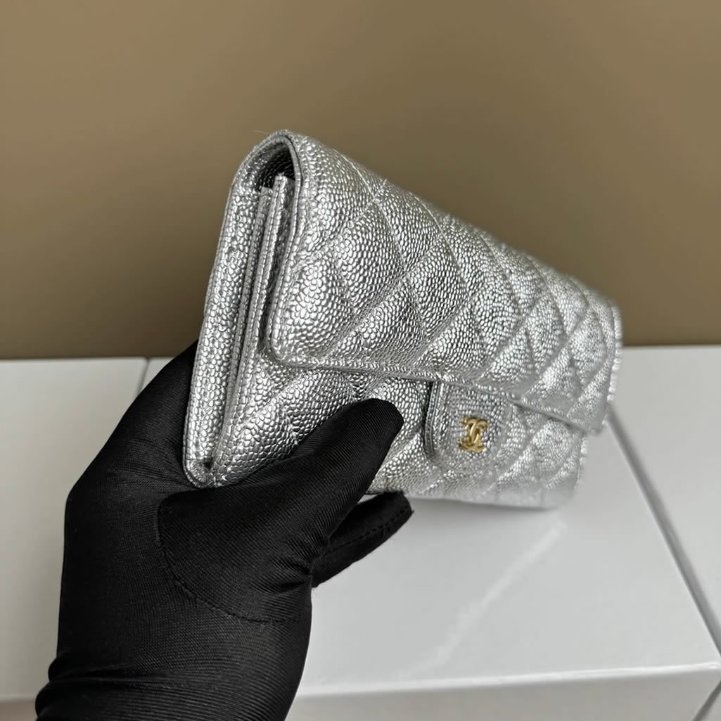 シャネル クラシック ロング フラップ ウォレット キャビアスキン シルバー ゴールド金具 chg50095