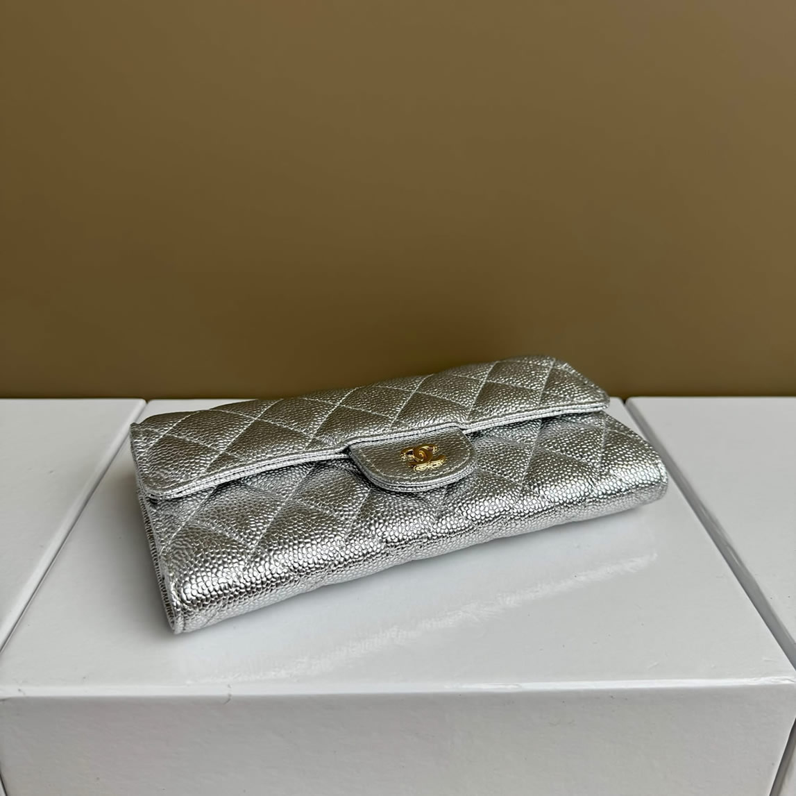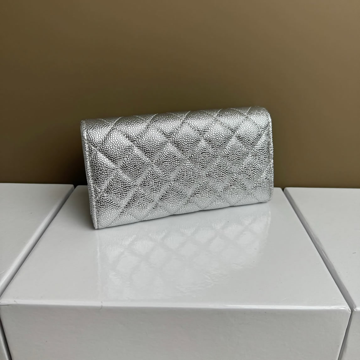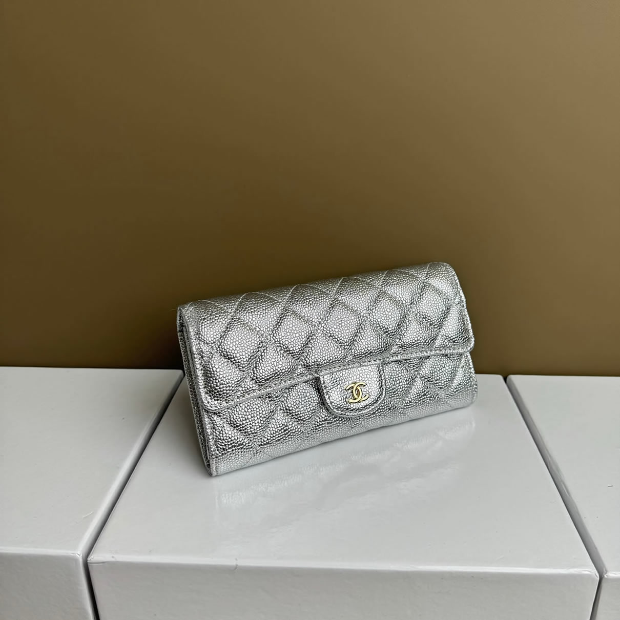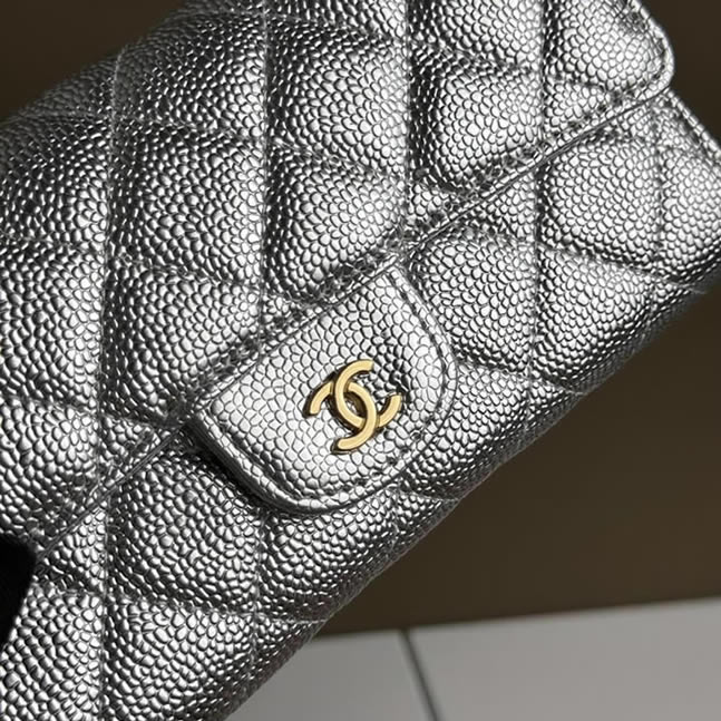 シャネル クラシック ロング フラップ ウォレット キャビアスキン シルバー ゴールド金具 chg50095