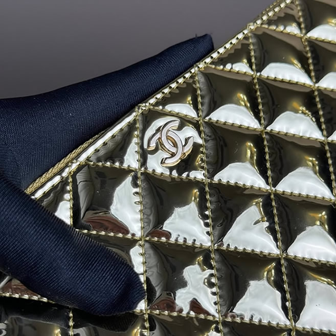 眩いばかりの輝きを放つゴールドのパテントレザーに、