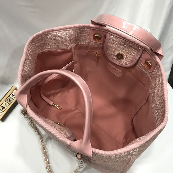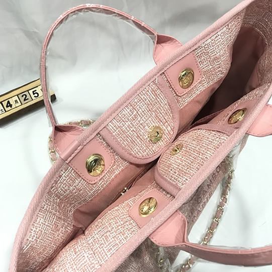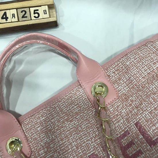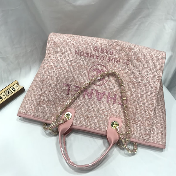カジュアルなキャンバス素材に「CHANEL」のロゴが映える「ドーヴィル・トートバッグ」です。