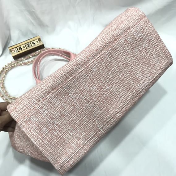 ゴールドのチェーンが調和し、収納力抜群な実用性とラグジュアリーな雰囲気を両立させています。