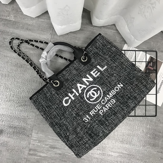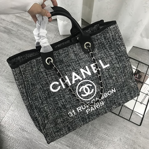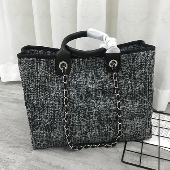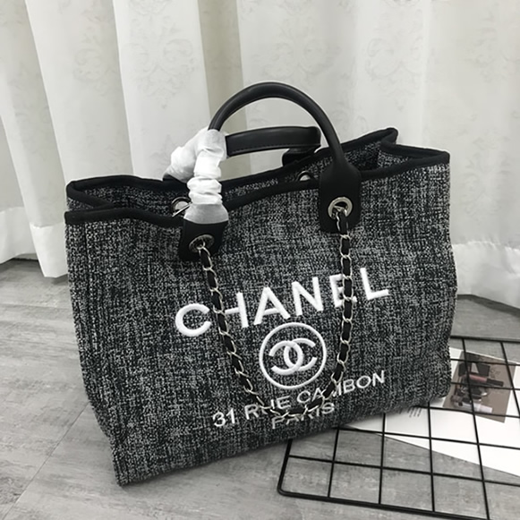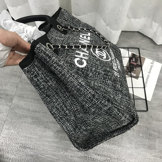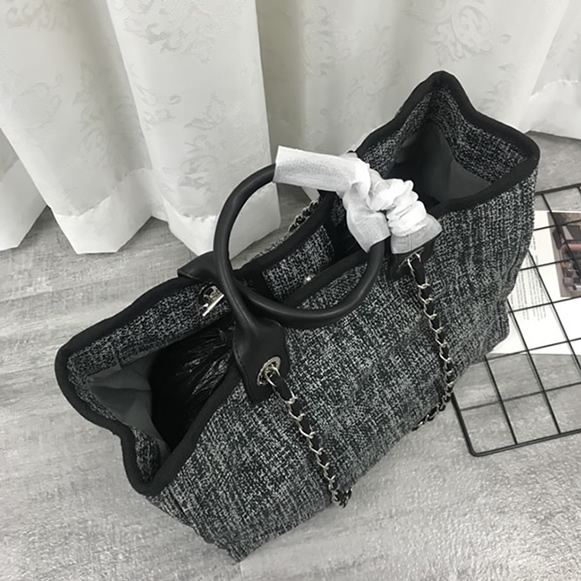 メゾンを象徴するツイード素材に「CHANEL」のロゴを刺繍した、クラシックな魅力溢れる「ドーヴィル・トートバッグ」です。