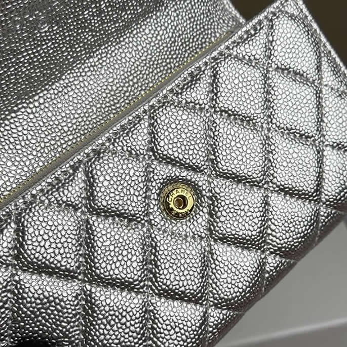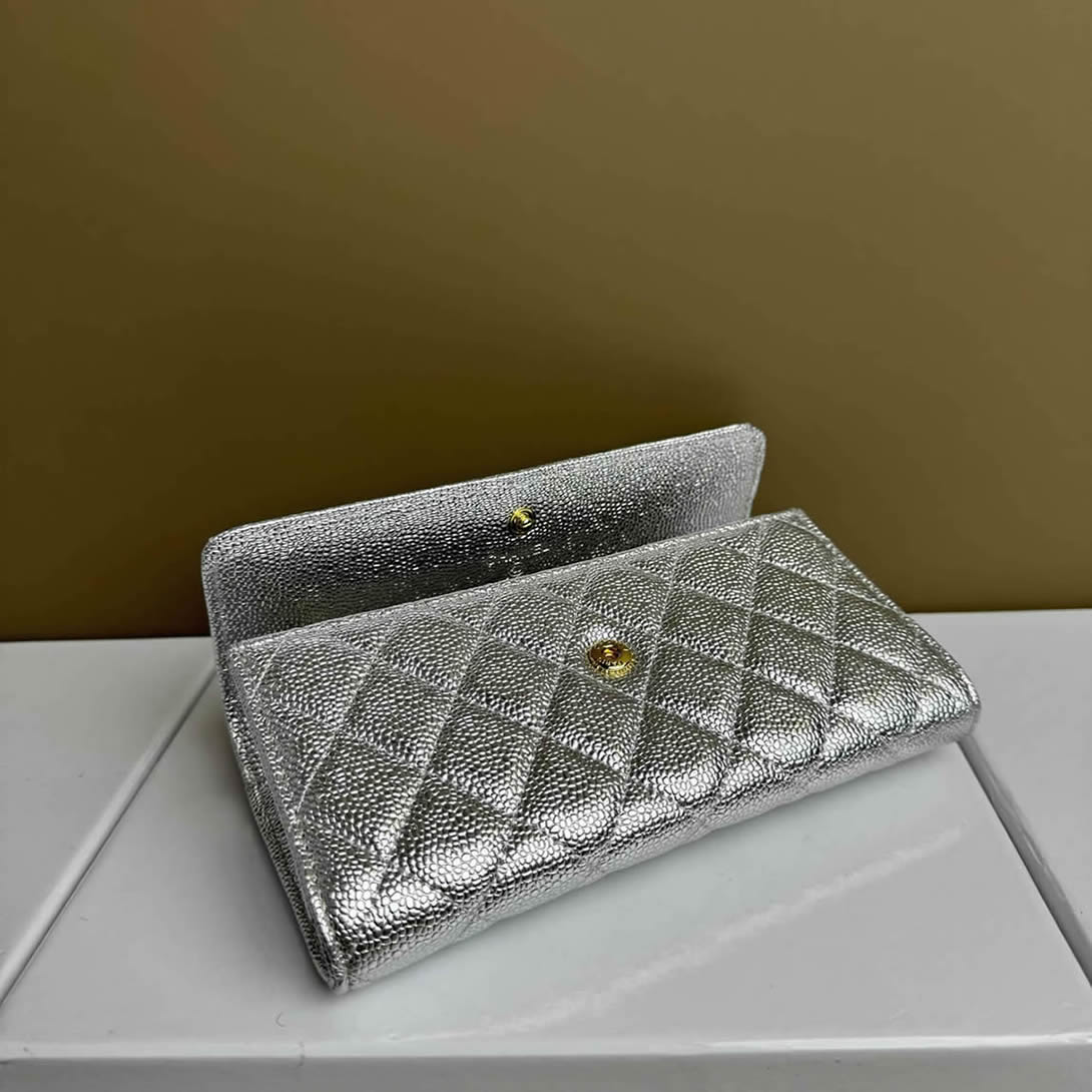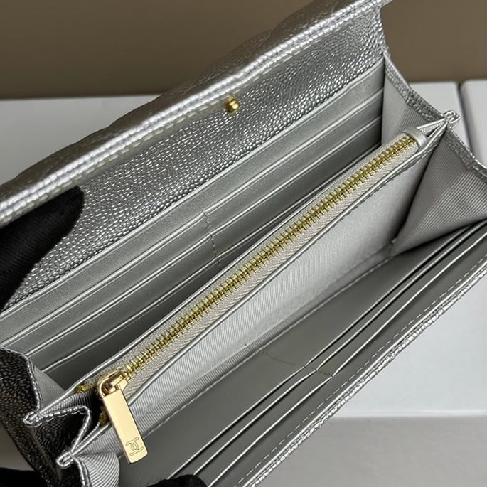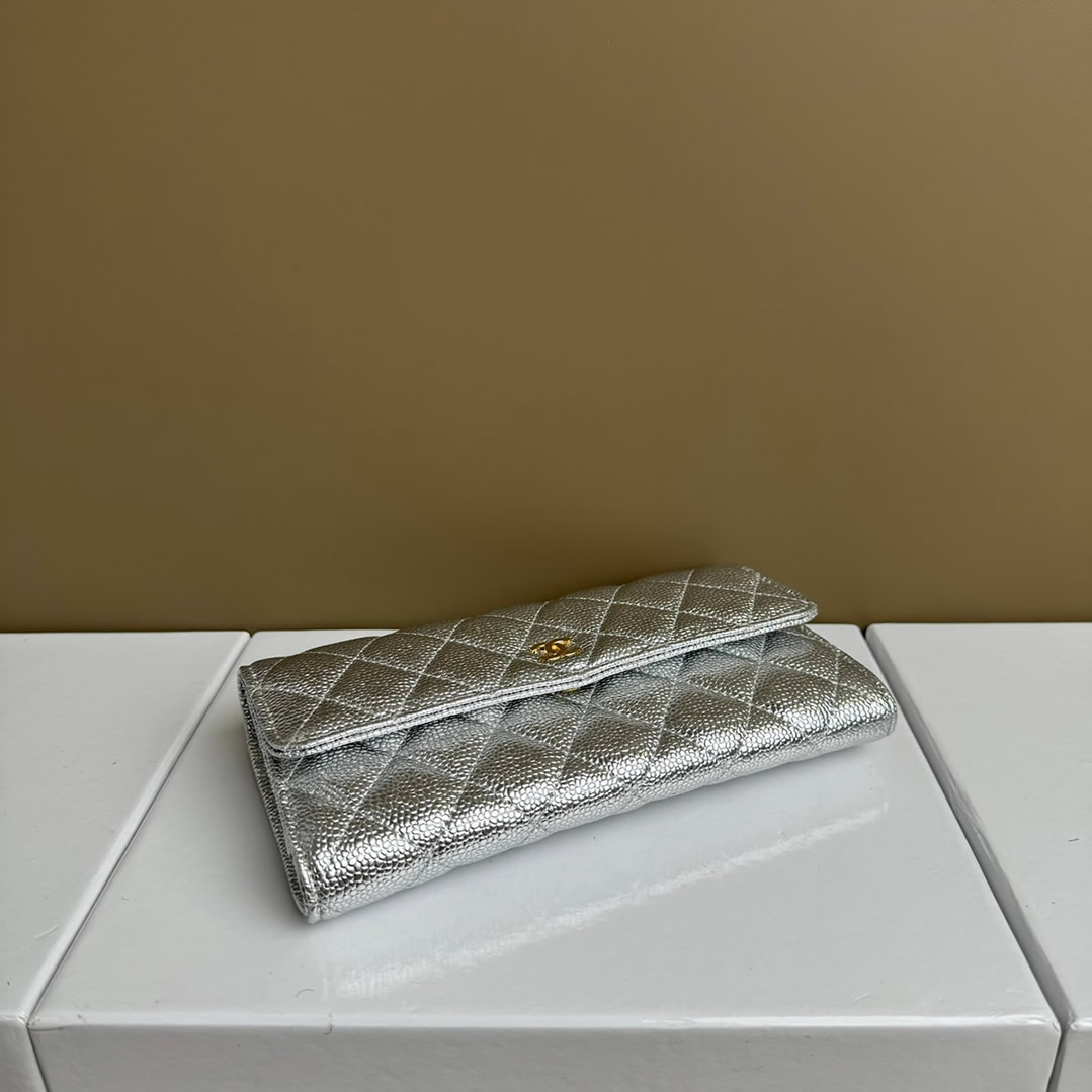 シャネル フラップ ウォレット キャビア シルバー G金具 chg2955