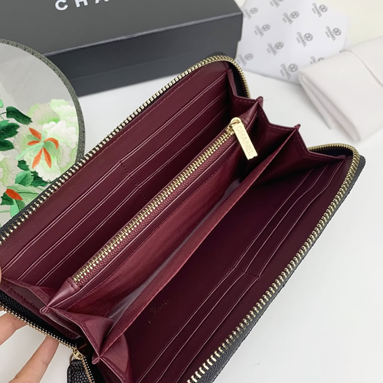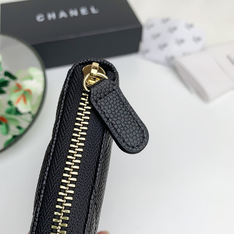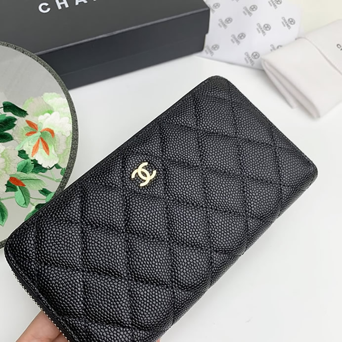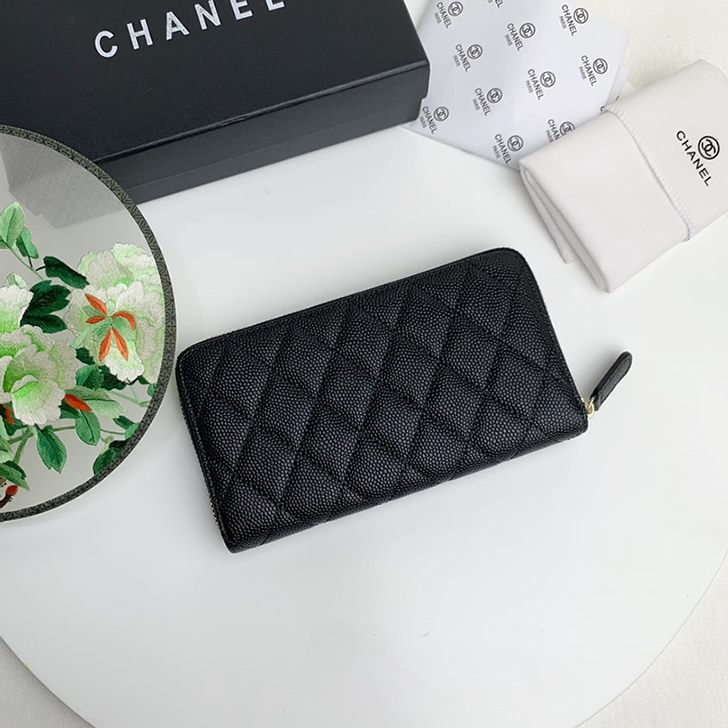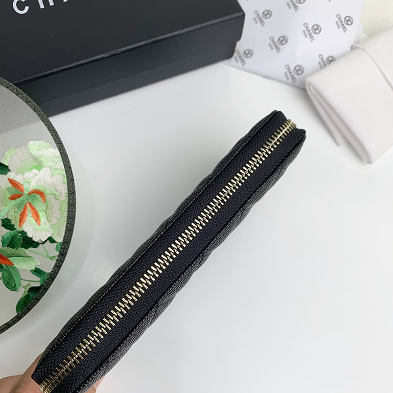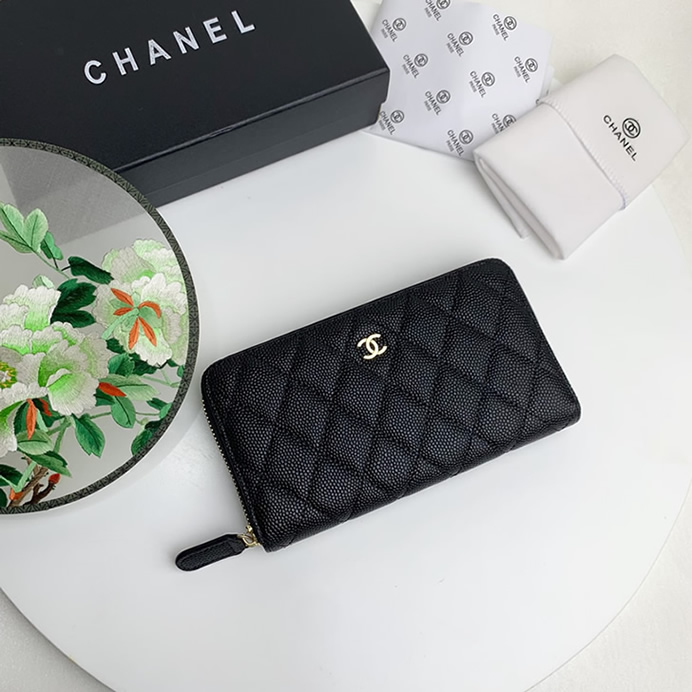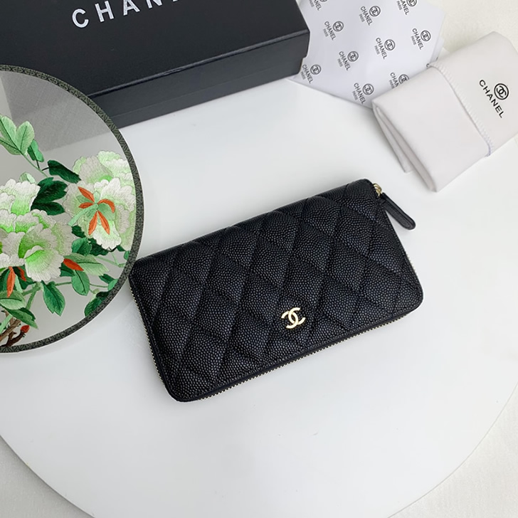 シャネル マトラッセ キャビアスキン ジップアラウンド 財布 ブラック ゴールド金具 chg2608