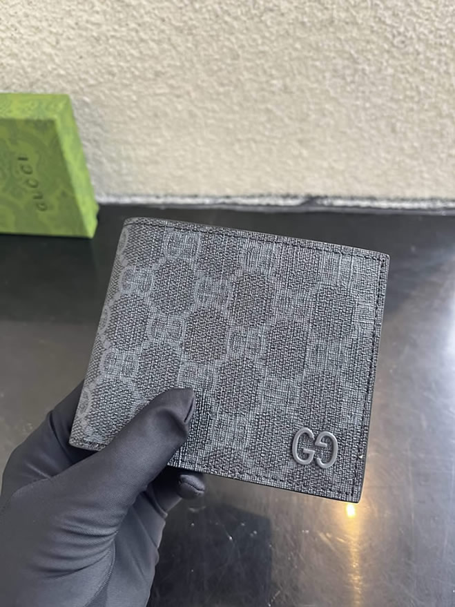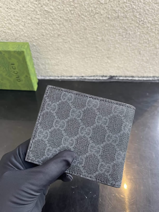 ブランドのアイコニックなGGスプリーム キャンバスをシックなブラックで仕上げた「グッチ・二つ折り財布」です。