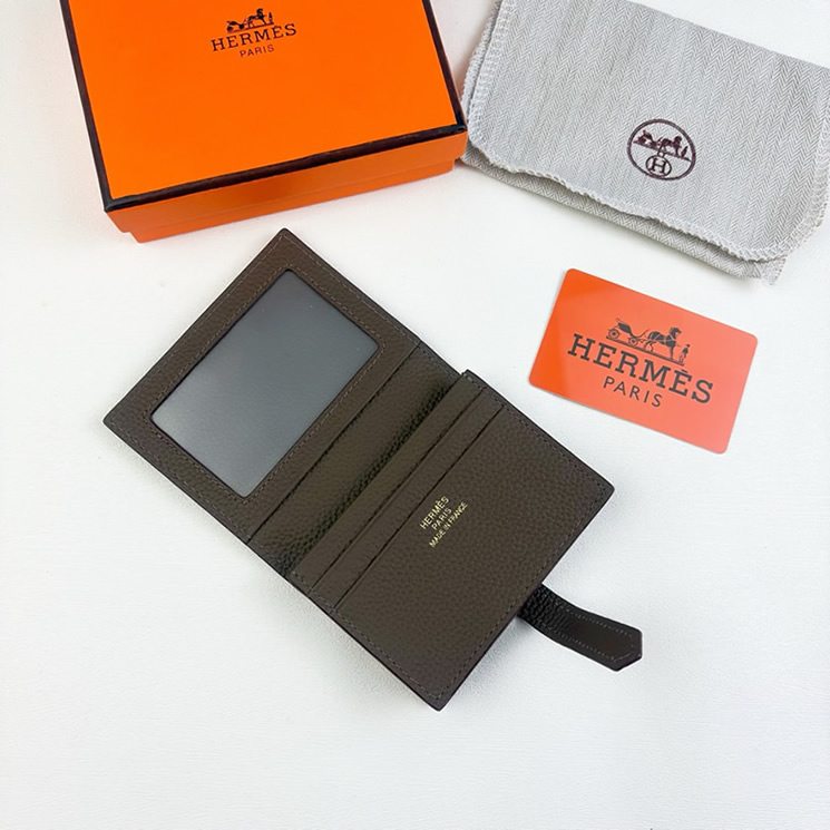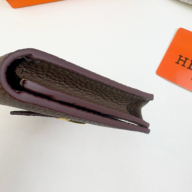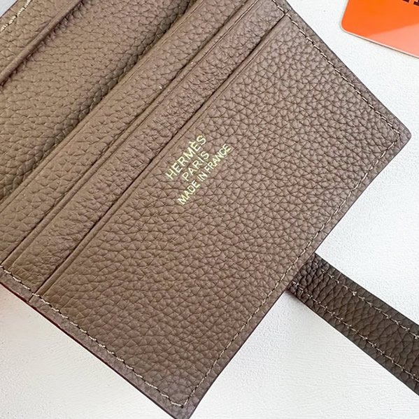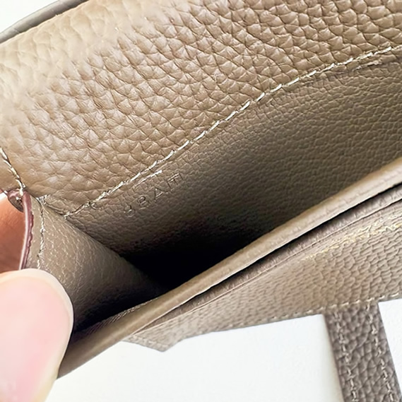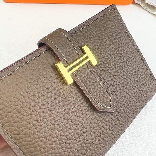 エルメス風 ベアン コンパクト 二つ折り財布 トゴレザー調 エトゥープ ゴールド金具HER495