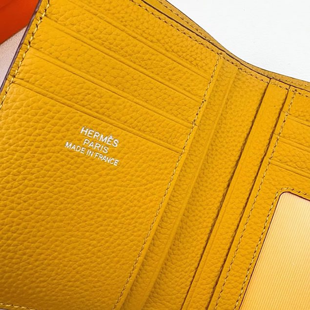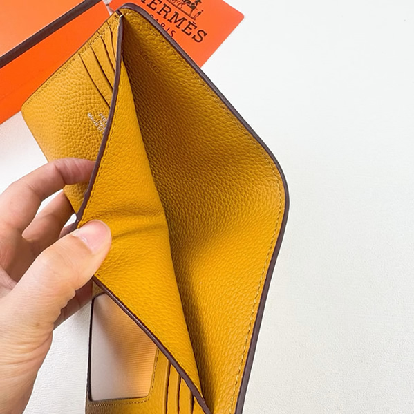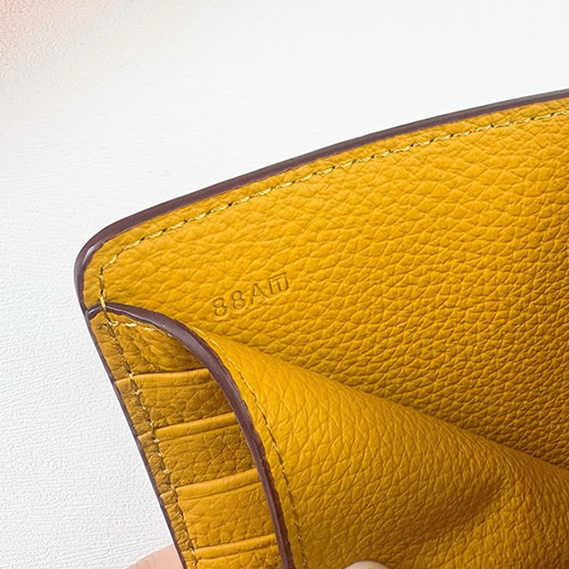 鮮やかなジョーヌナプル(イエロー系)のレザーにシルバー金具が調和し、