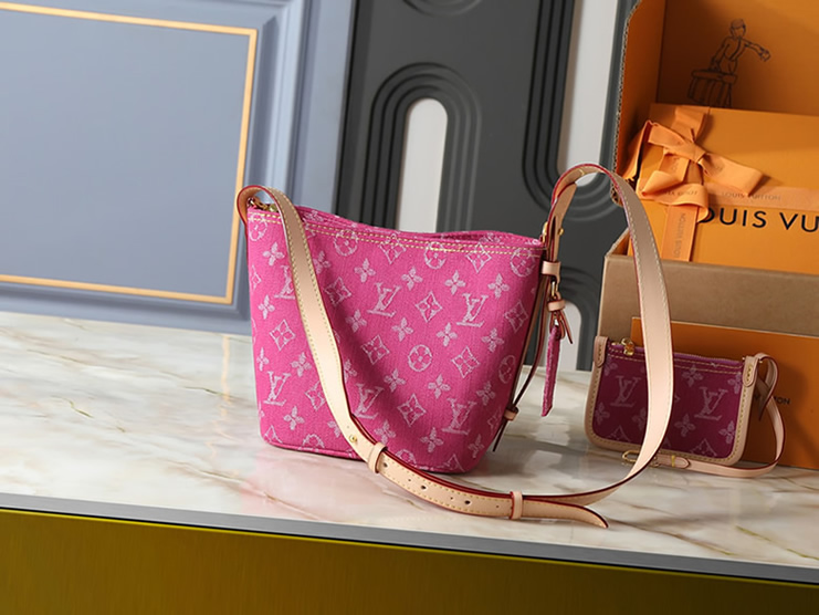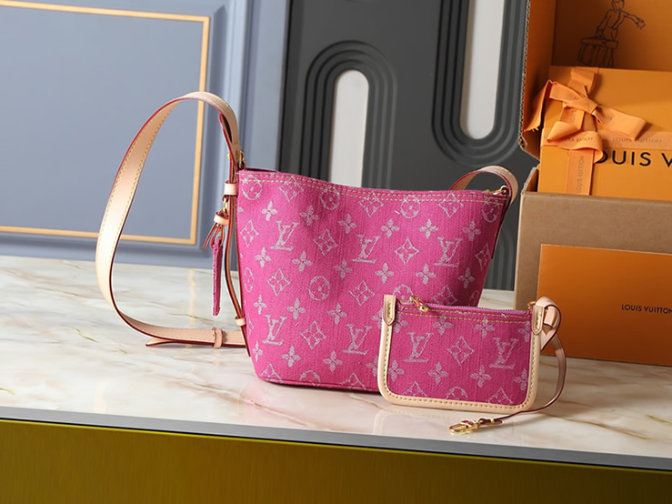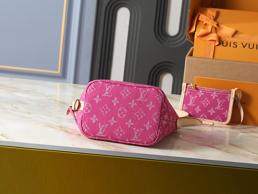 鮮やかなピンクのモノグラム・デニムが、