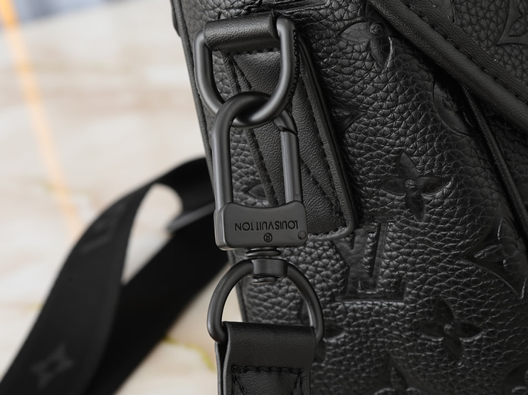 ブラックカラーのレザーとテキスタイルのディテールを組み合わせ、