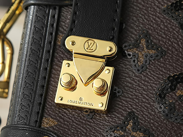 リベットを施したレザーのコーナー部分やゴールドカラーのSロックなど、