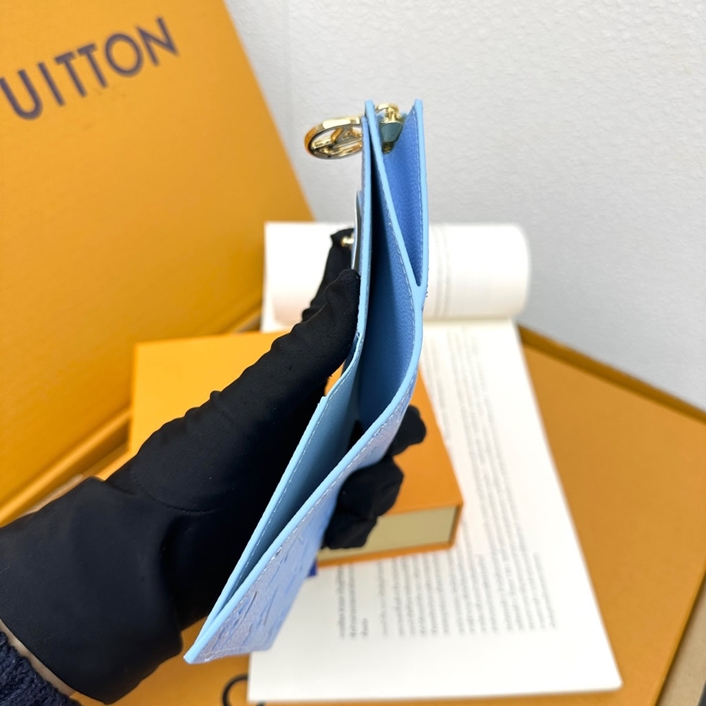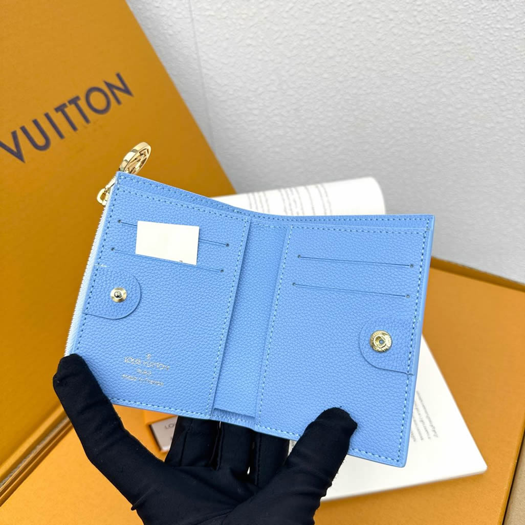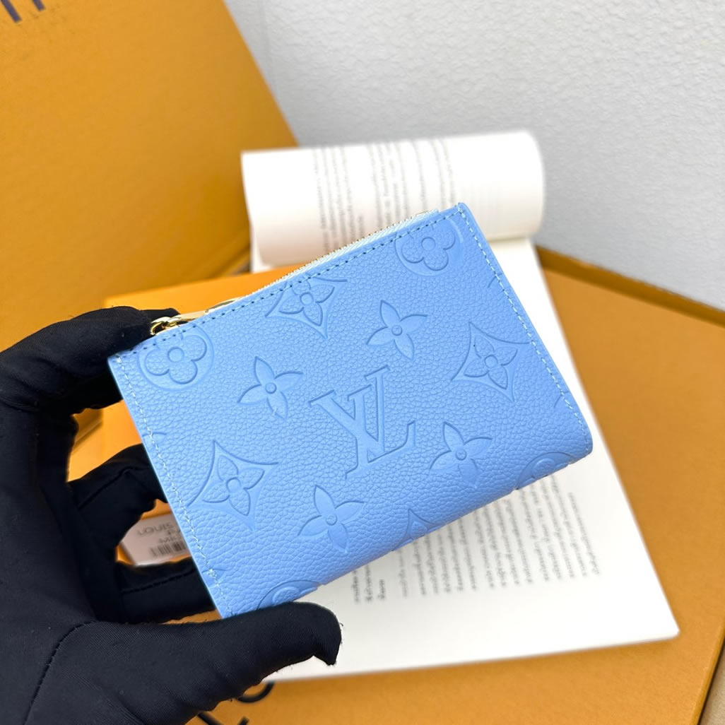 澄み渡る空のようなブルーが美しく映えるコンパクトな財布です。