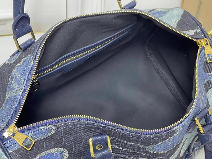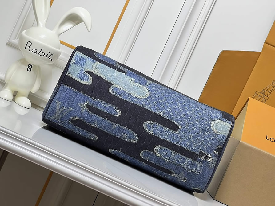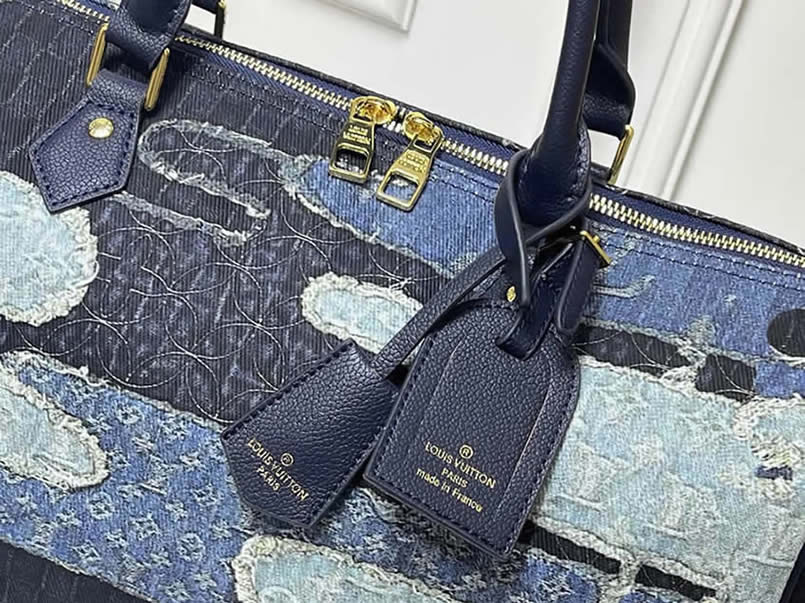 独特な風合いのモノグラム・デニムを使用し、ジャカード織りで表現されたパターンとパッチワーク風のデザインが、