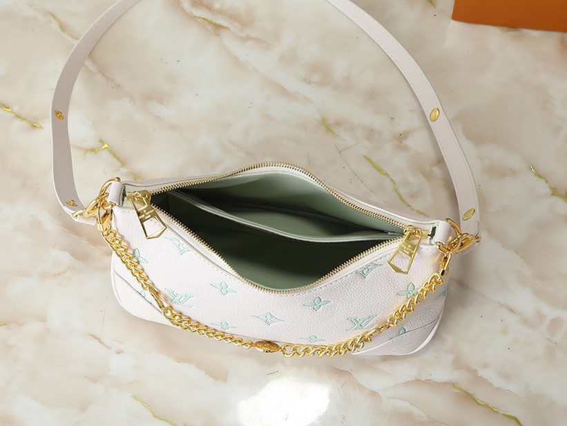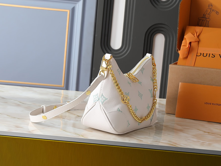 清潔感溢れるホワイトのモノグラム・アンプラント レザーに、