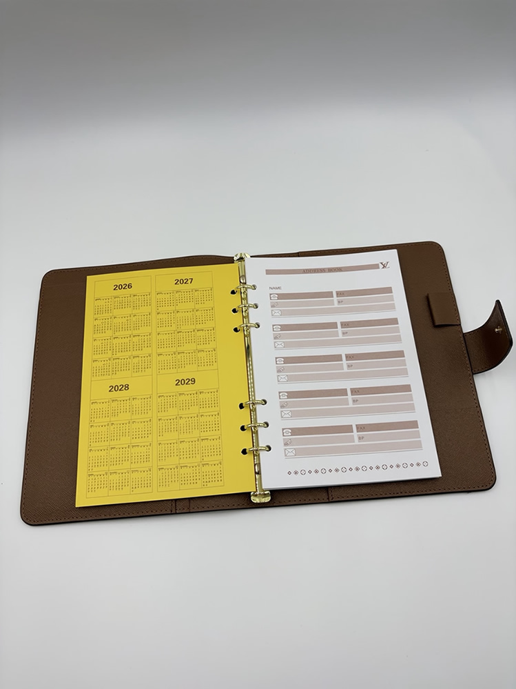 ノートやダイアリーを差し込んで使用できる機能的な内装に加え、