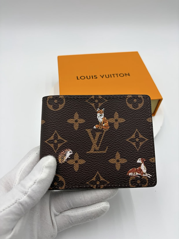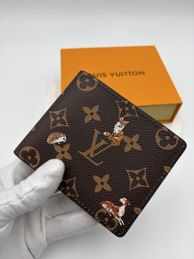 キツネやハリネズミといった愛らしい動物たちが描かれた特別限定デザインの二つ折り財布です。