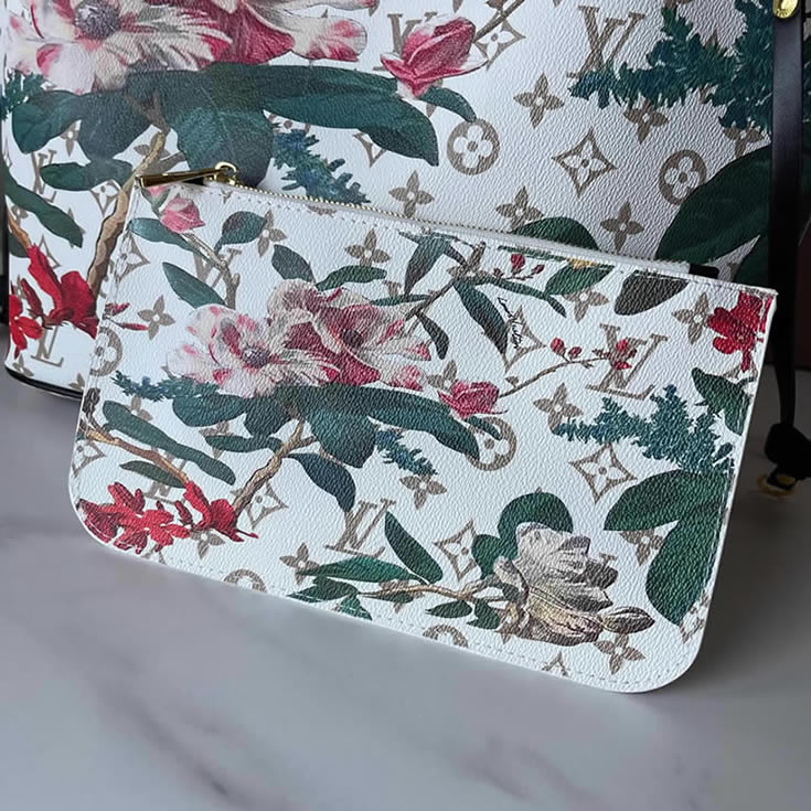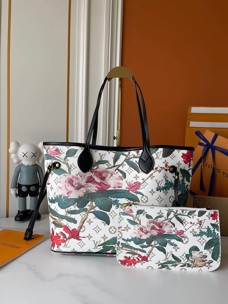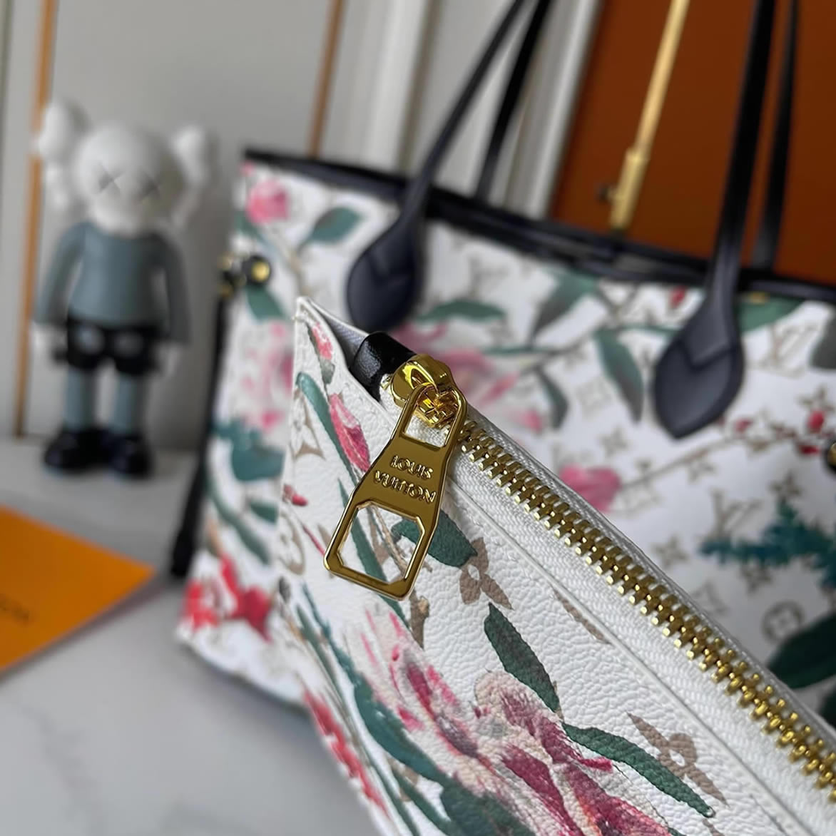 ルイ・ヴィトン モノグラム・ブロッサム ネヴァーフル MM & ポーチ バッグ ホワイト M28918