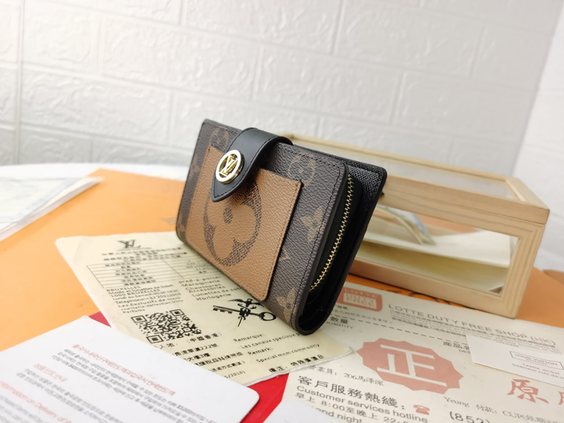 洗練されたムード漂うアイコニックな二折財布です。