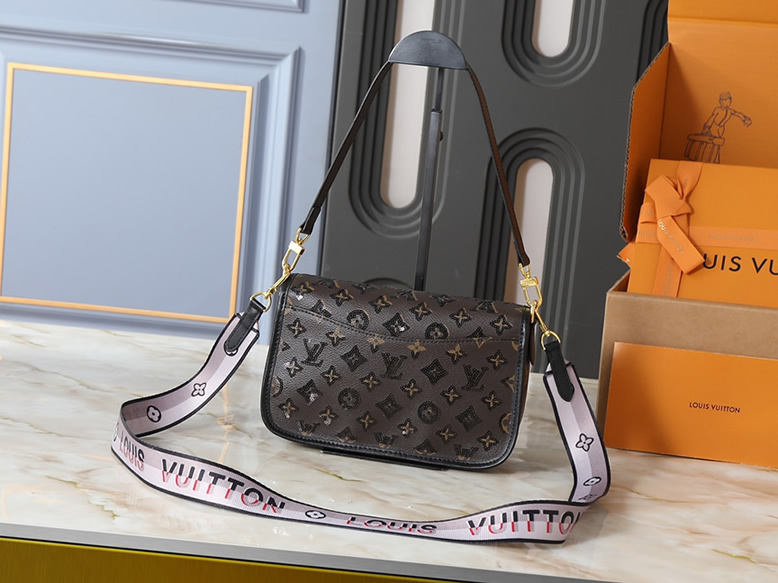 伝統的なモノグラム・キャンバスに、華やかなスパンコールと繊細な刺繍を施した、大変希少な限定モデルのショルダーバッグです。