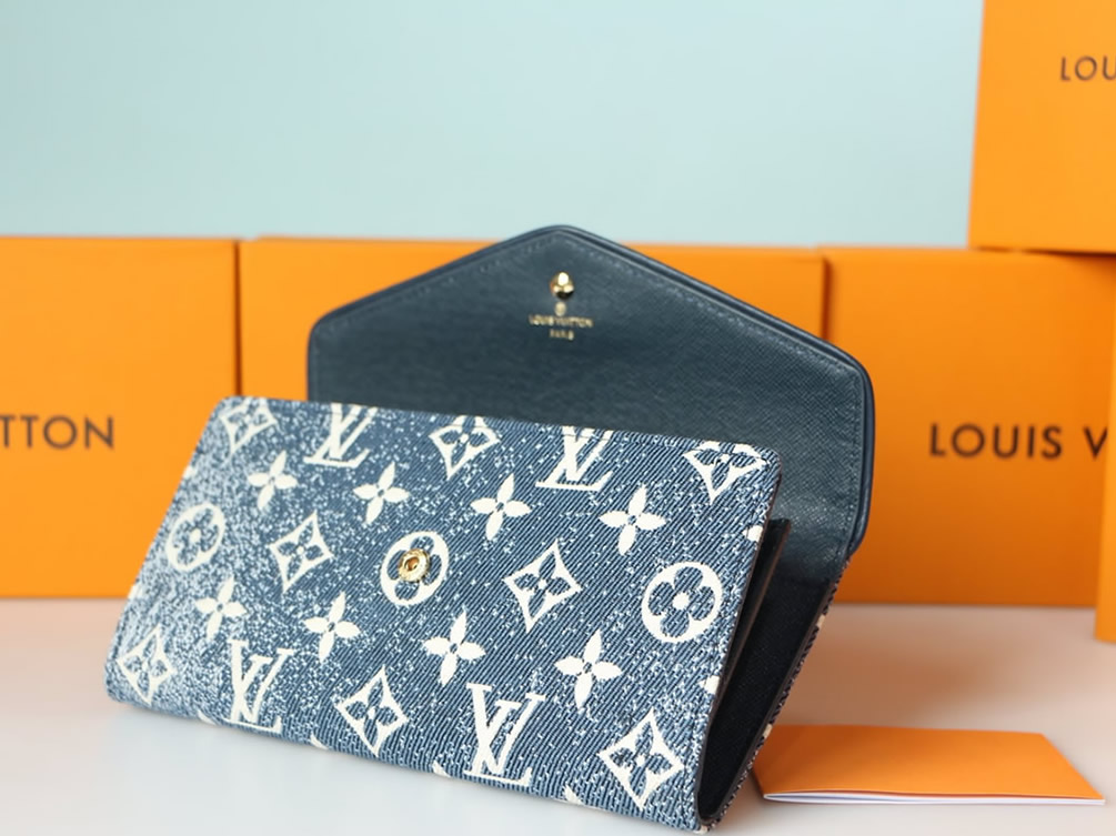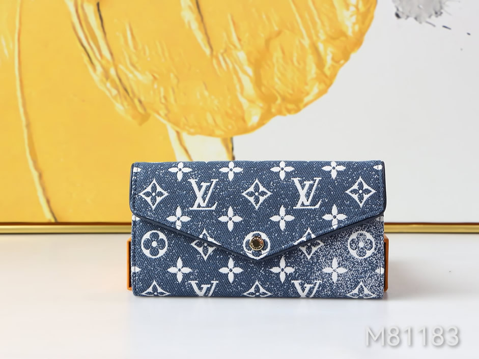 ルイ・ヴィトン ポルトフォイユ・サラ モノグラム・デニム ブルー 長財布 M81183