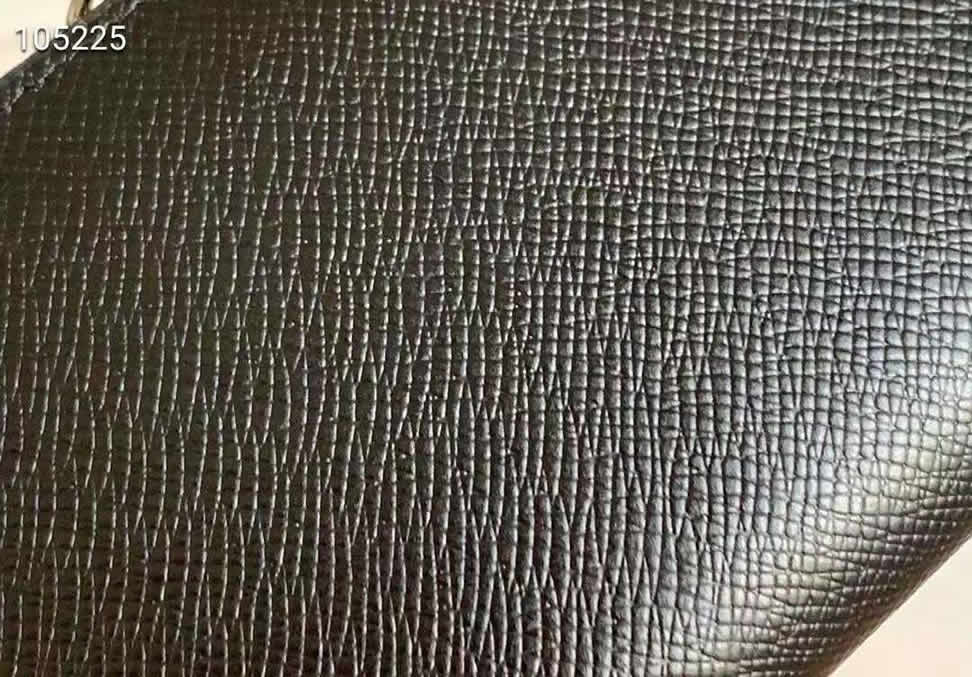 上質なカウハイドレザーに繊細な型押しを施したノワール(ブラック)の色調が、